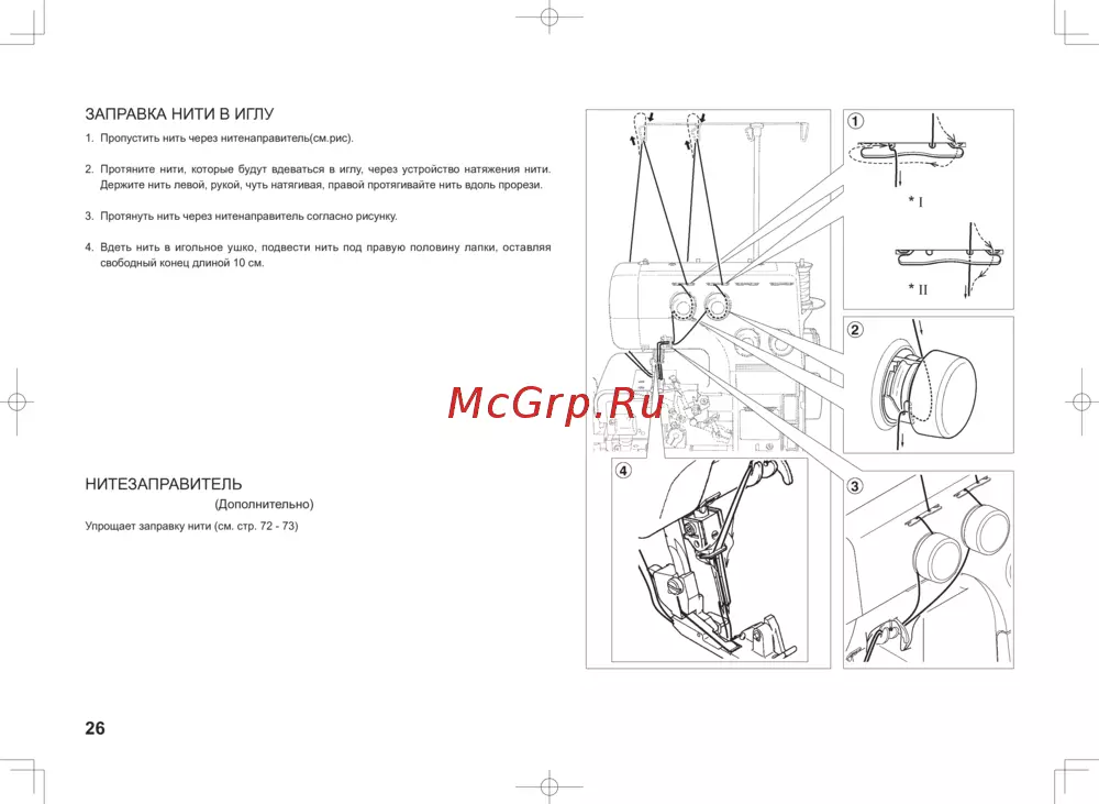 3. Протянуть нить через нитенаправитель согласно рисунку.