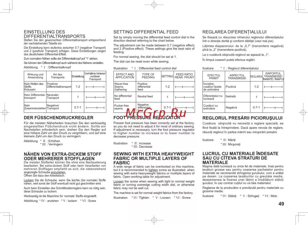 - Мщщк дштлуктффдв für die linke nadel for left needle pentru ata stîng p.74