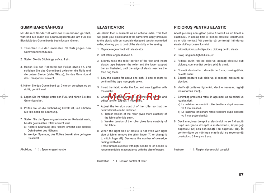 - Мщщк дштлуктффдв für die linke nadel for left needle pentru ata stîng p.74