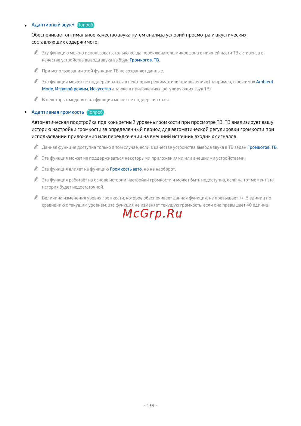 ![Samsung QE85QN85BAU [139/297] Обеспечивает оптимальное качество звука путем анализа условий просмотра и акустических составляющих содержимого](/views2/2016953/page139/bg8b.png)