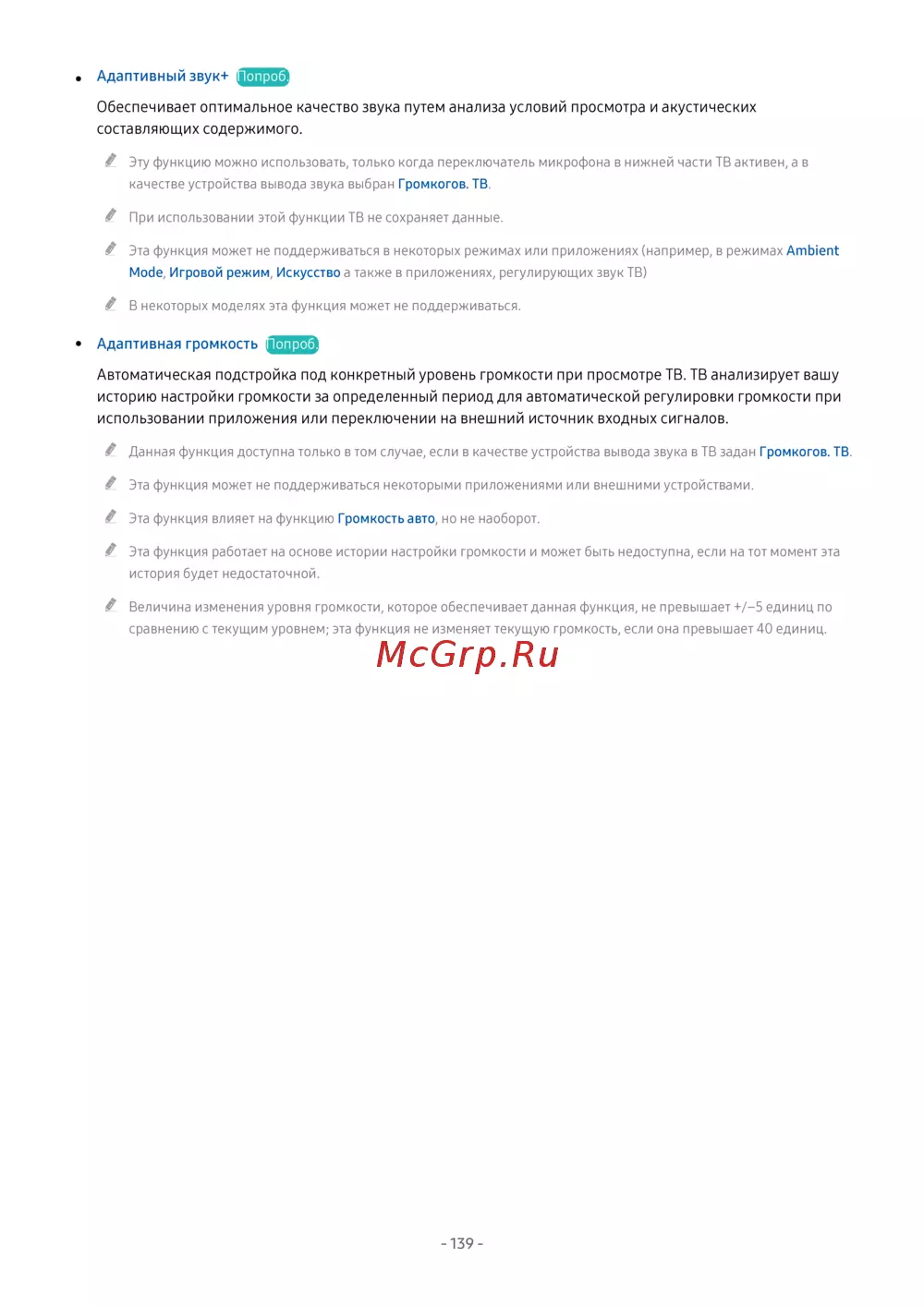 Данная функция доступна только в том случае, если в качестве устройства вывода звука в ТВ задан Громкогов. ТВ.
