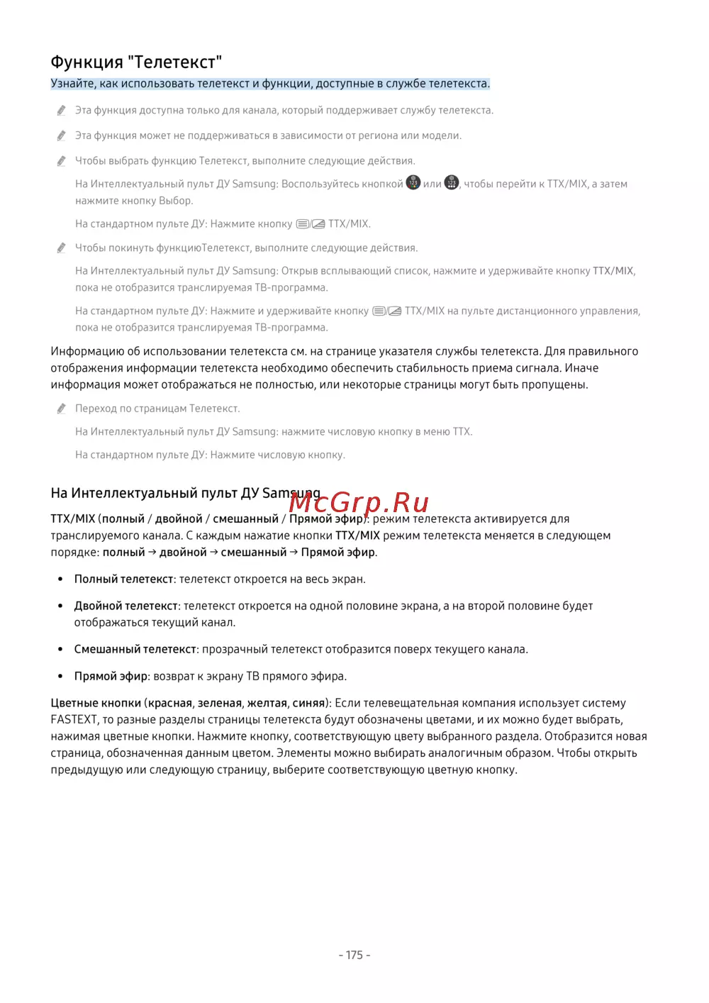 На Интеллектуальный пульт ДУ Samsung: Воспользуйтесь кнопкой или , чтобы перейти к TTX/MIX, а затем