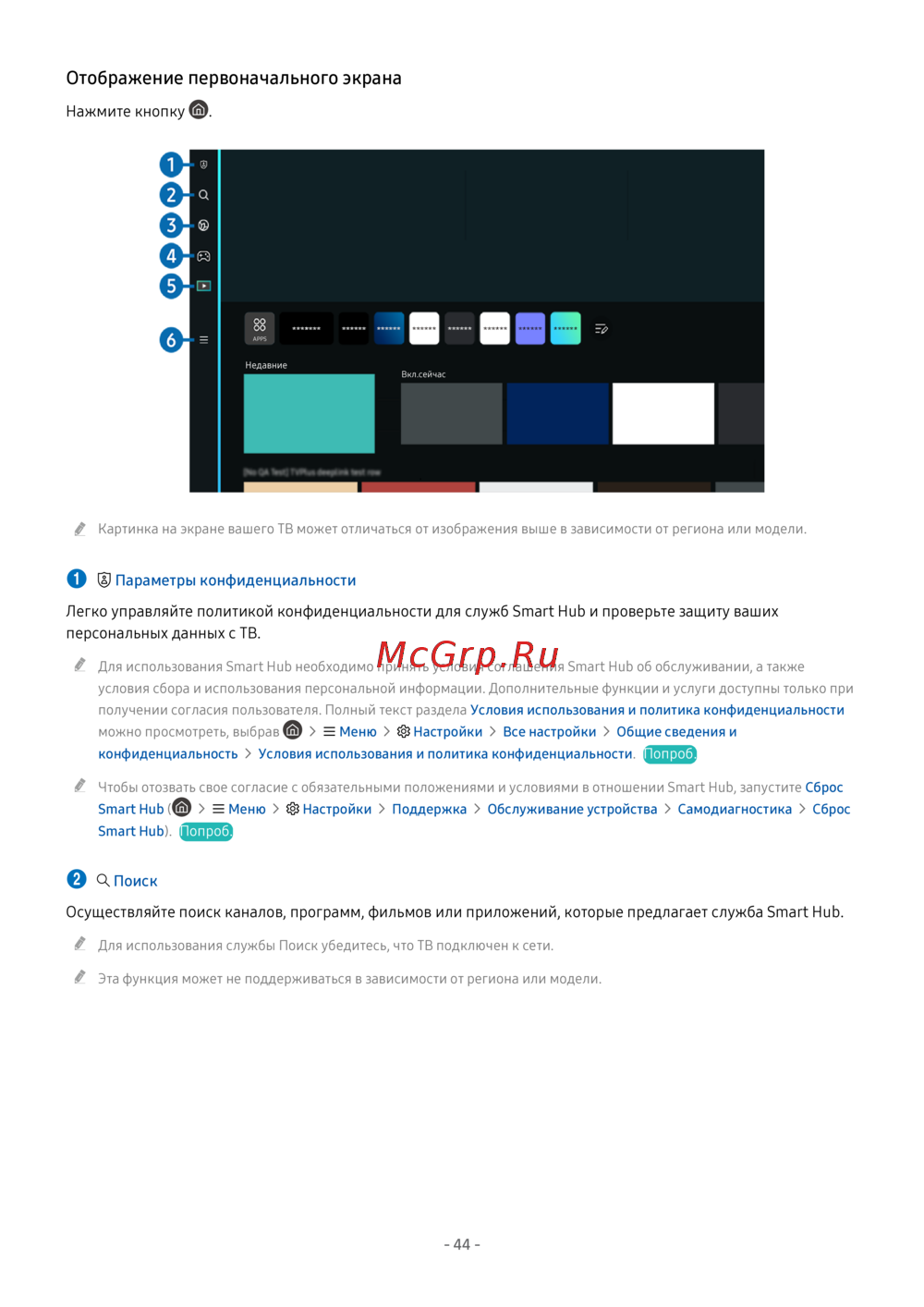 - Легко управляйте политикой конфиденциальности для служб smart hub и проверьте защиту ваших персональных данных с тв p.294