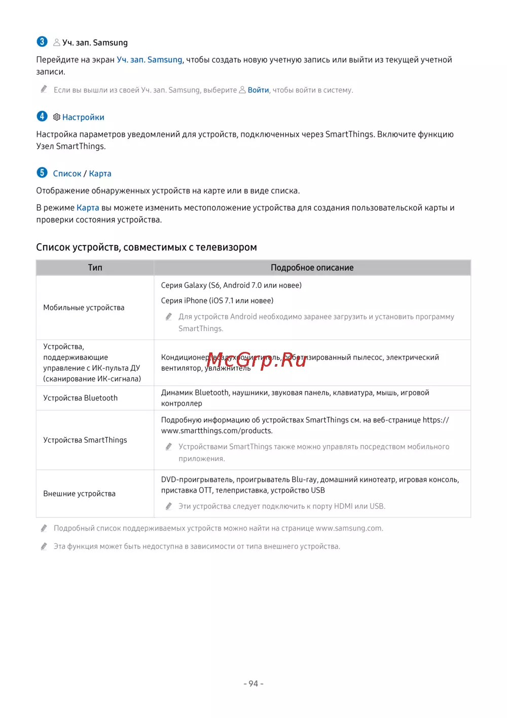 Подробный список поддерживаемых устройств можно найти на странице www.samsung.com.