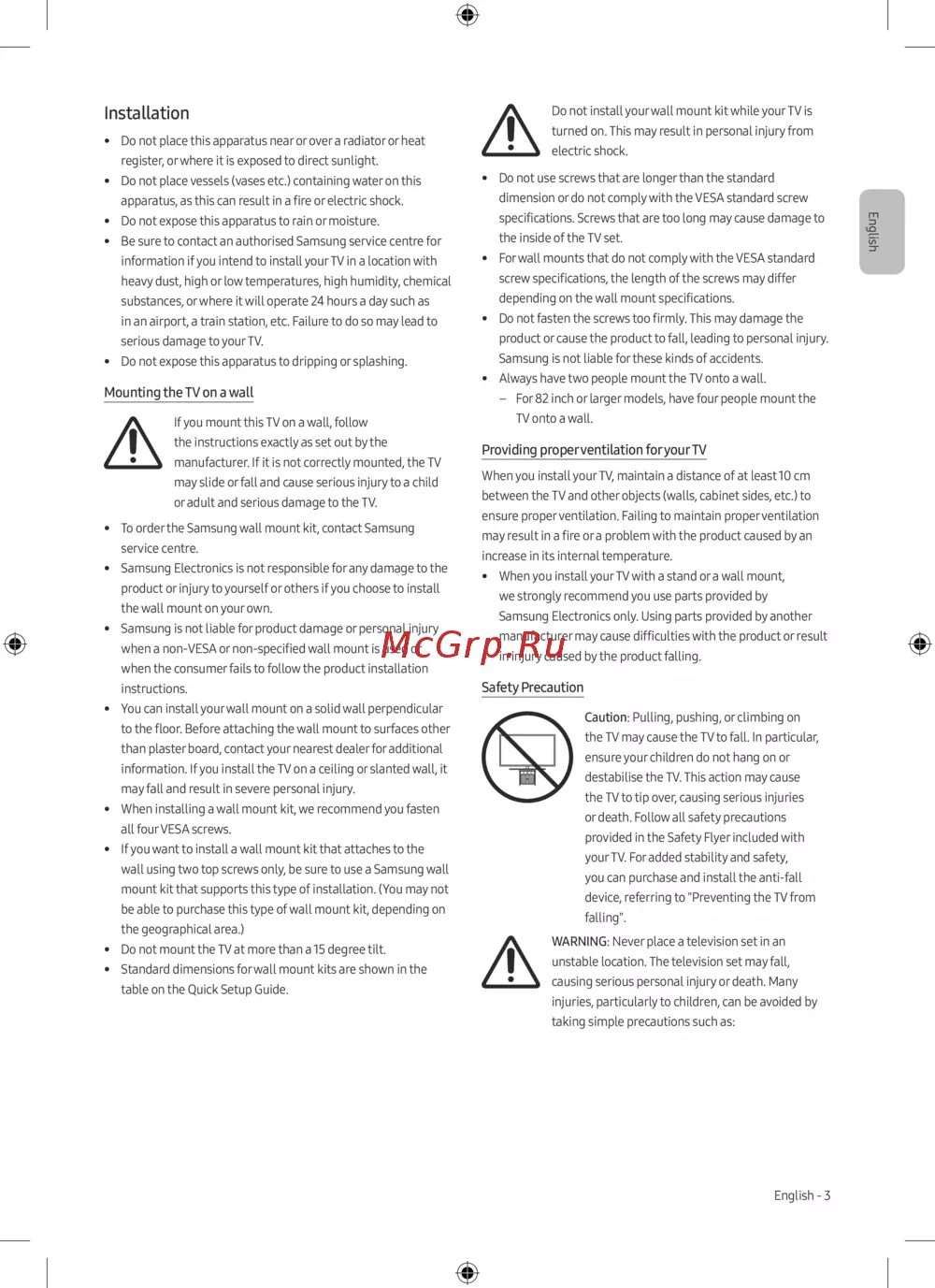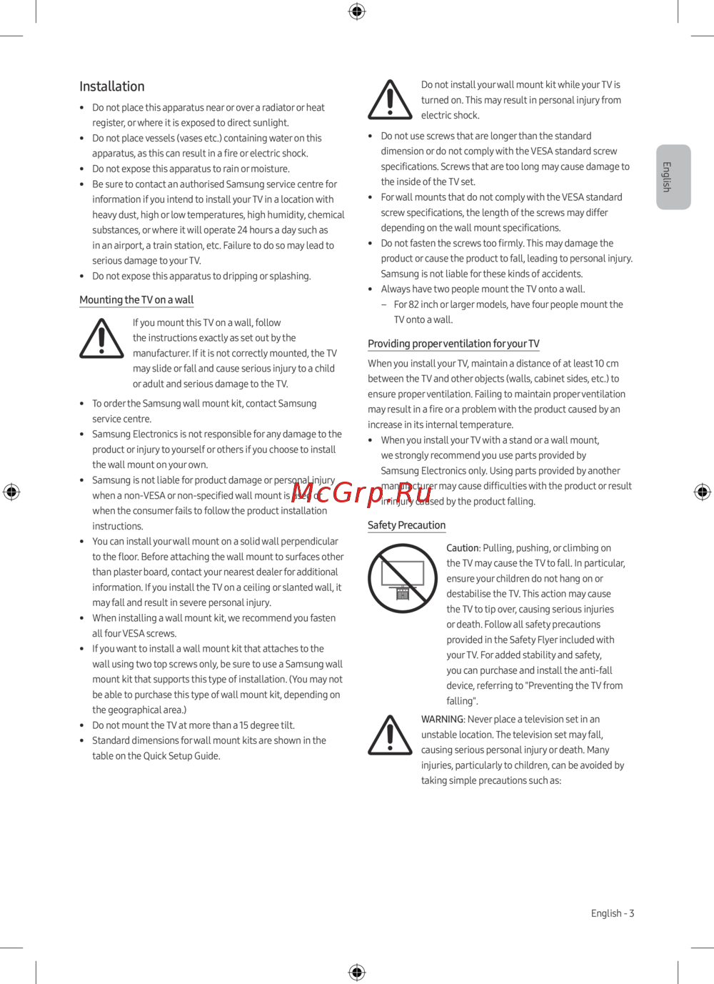 - Обеспечение достаточной вентиляции для телевизора p.3