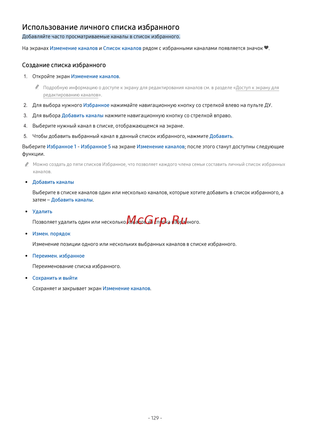 Чтобы добавить выбранный канал в данный список избранного, нажмите Добавить.