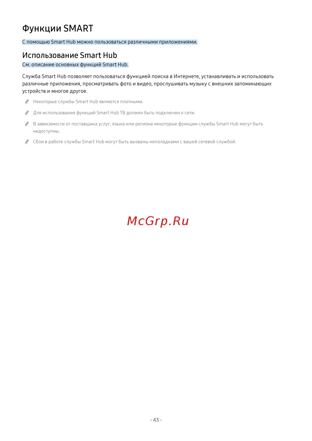 Для использования функций Smart Hub ТВ должен быть подключен к сети.