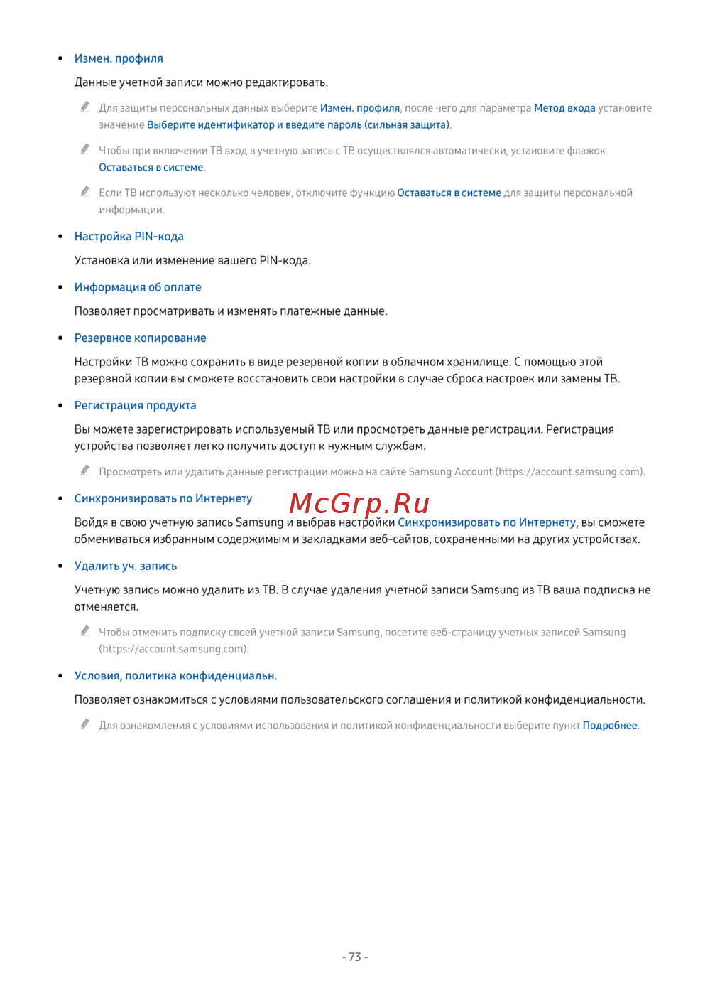 Просмотреть или удалить данные регистрации можно на сайте Samsung Account (https://account.samsung.com).