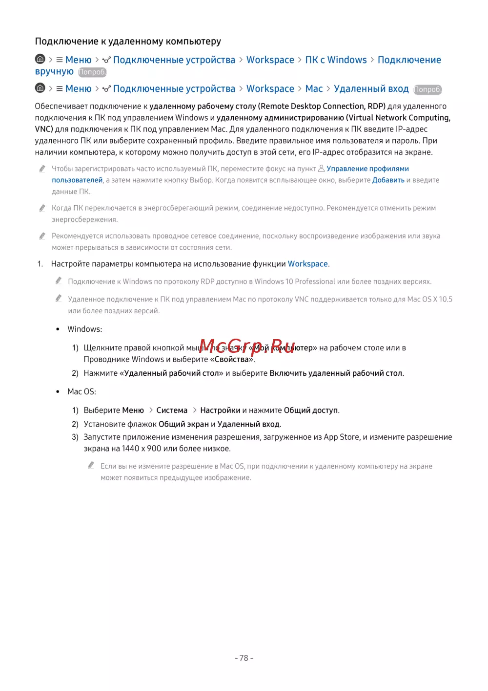 VNC) для подключения к ПК под управлением Mac. Для удаленного подключения к ПК введите IP-адрес