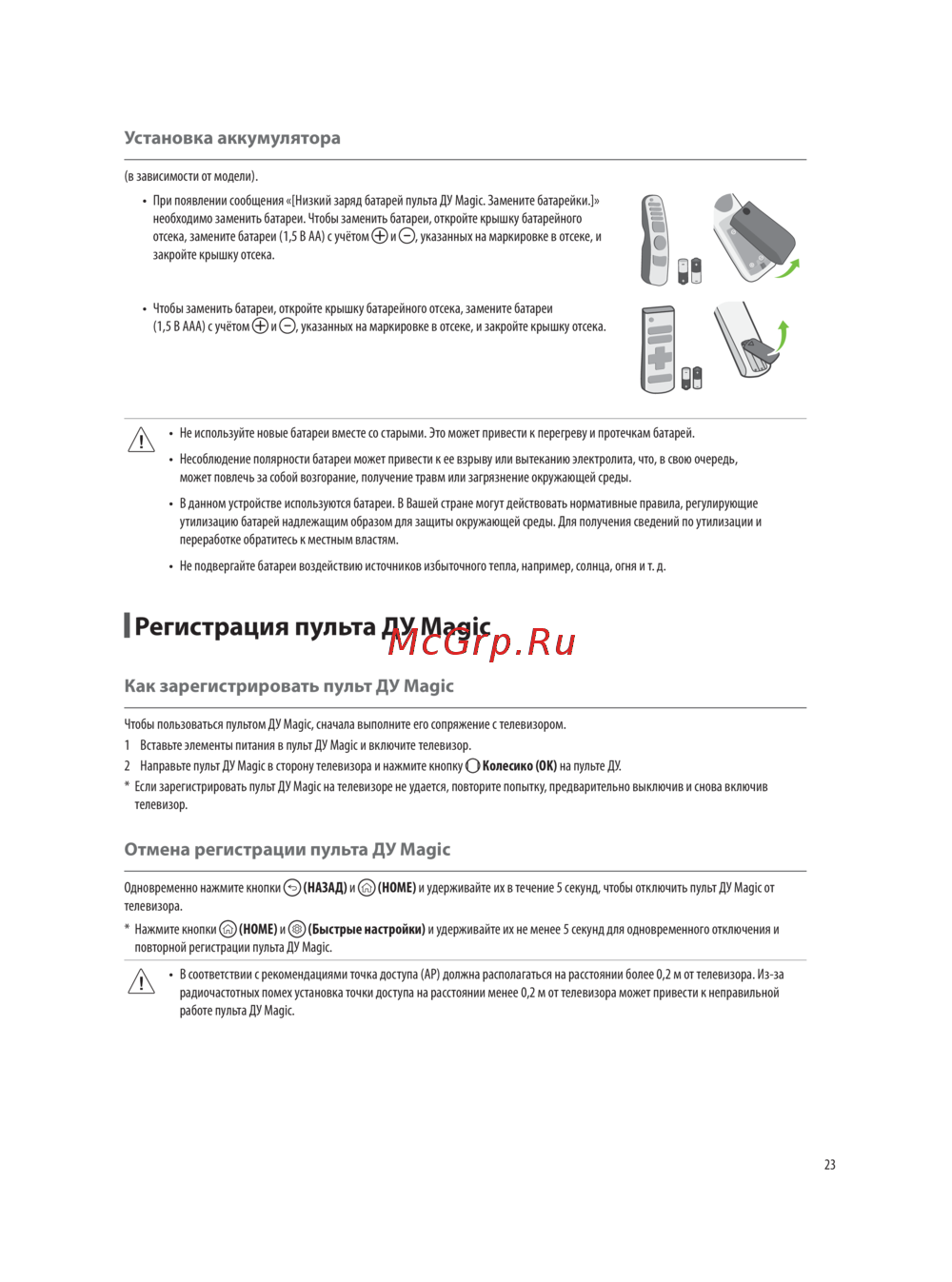 * Если зарегистрировать пульт ДУ Magic на телевизоре не удается, повторите попытку, предварительно выключив и снова включив