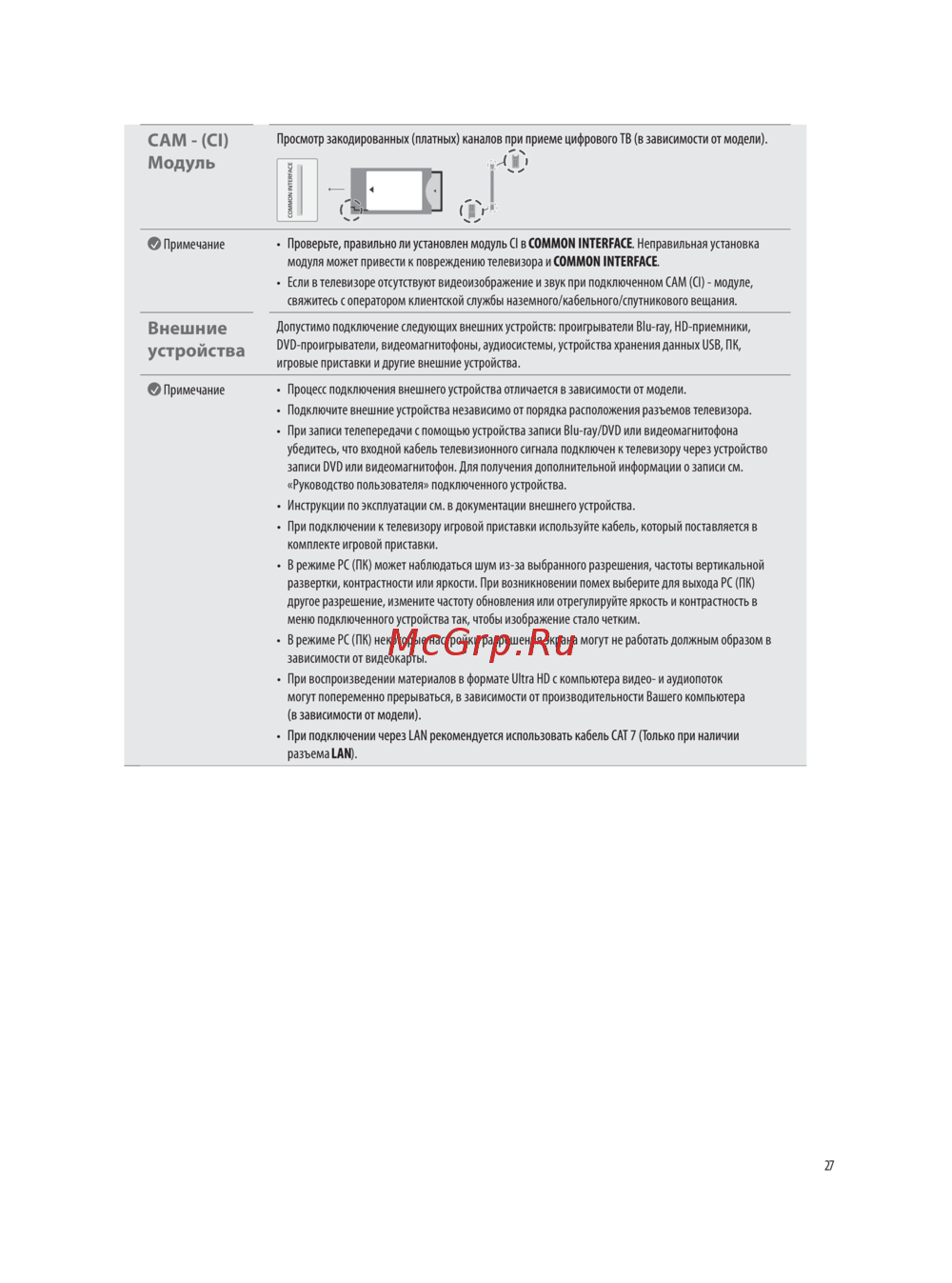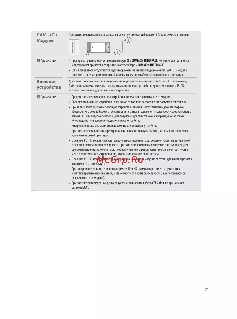 • Если в телевизоре отсутствуют видеоизображение и звук при подключенном CAM (CI) - модуле,