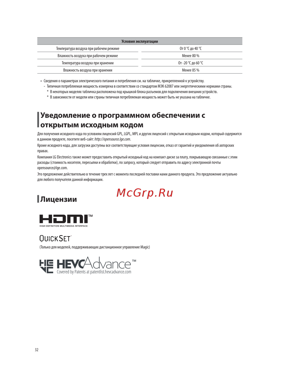 LG 55UP81006LA — условия эксплуатации и требования к устройствам [22/23]