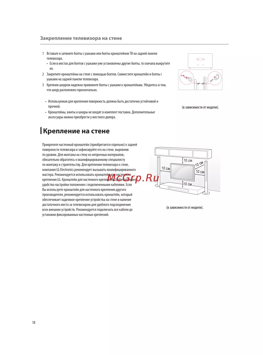 • Кронштейны, винты и шнуры не входят в комплект поставки. Дополнительные