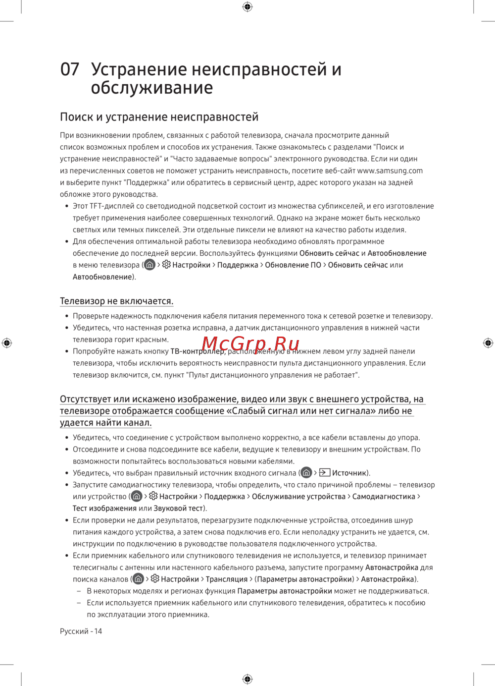 Samsung UE43AU7002U [14/44] Устранение неисправностей и обслуживание