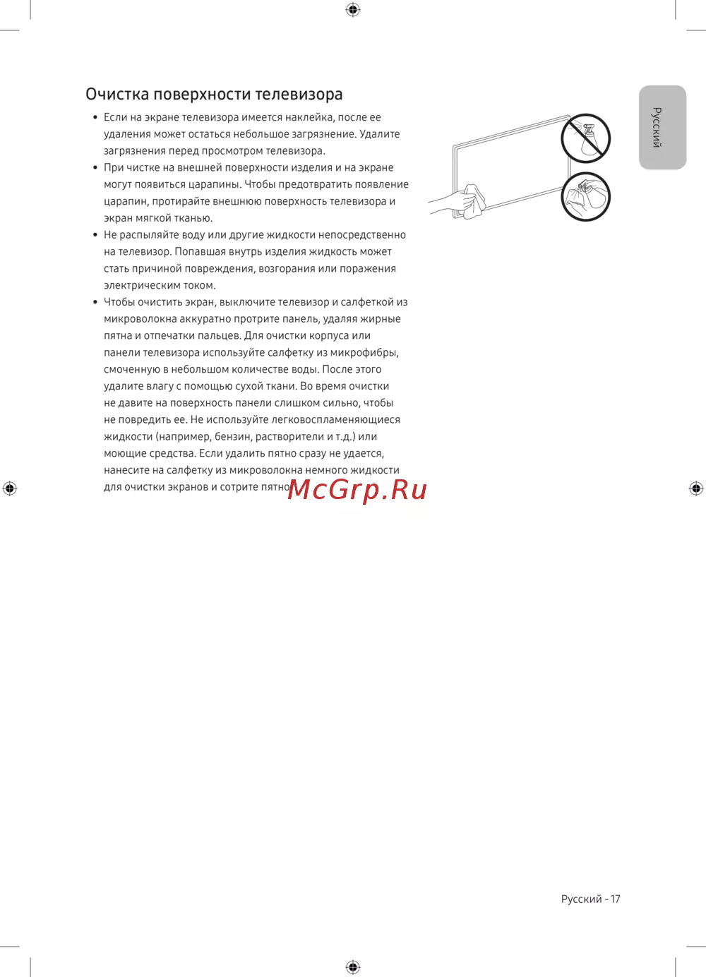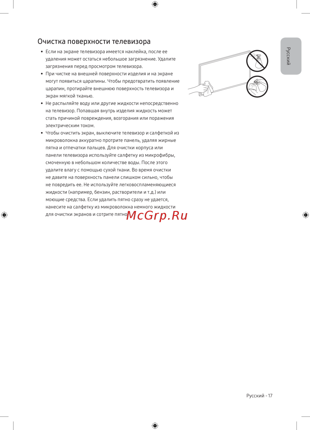 Samsung UE43AU7002U [17/44] Очистка поверхности телевизора