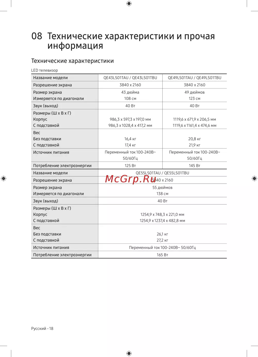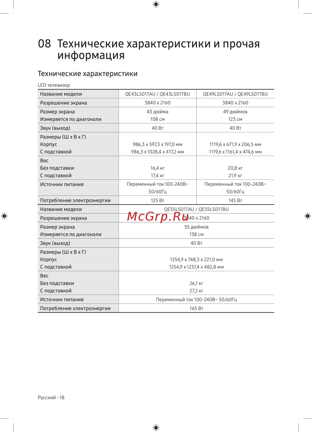Название модели QE43LS01TAU / QE43LS01TBU QE49LS01TAU / QE49LS01TBU