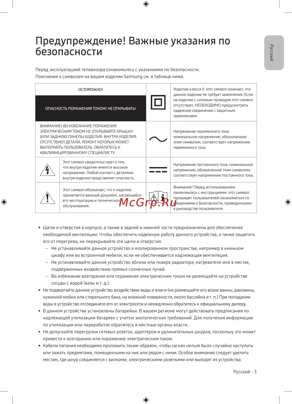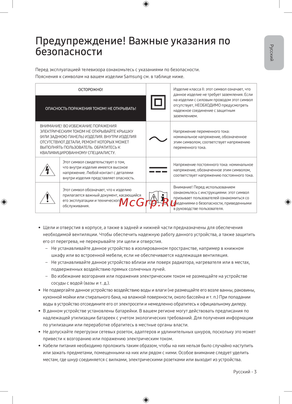 - Перед эксплуатацией телевизора ознакомьтесь с указаниями по безопасности p.3