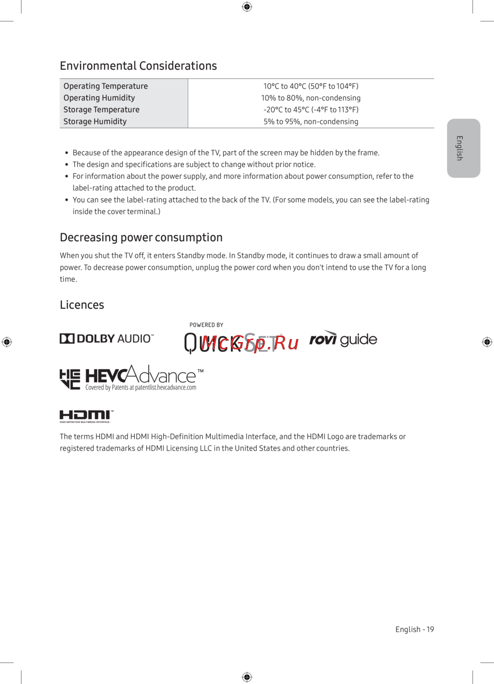 Samsung UE43AU7002U [41/44] Operating temperature operating humidity storage temperature storage humidity