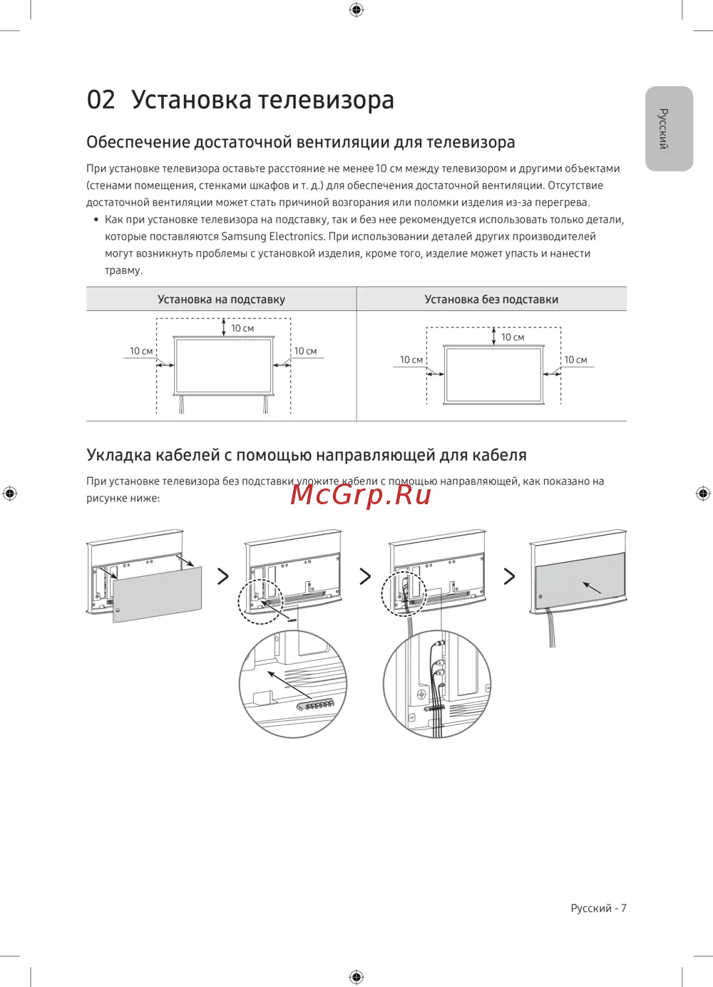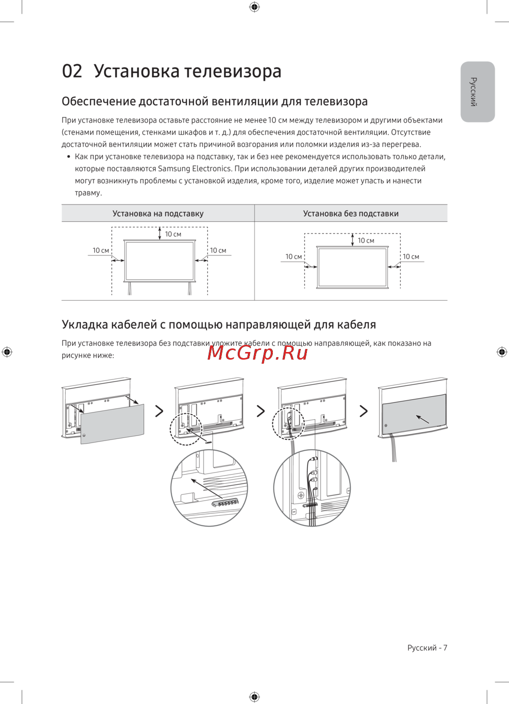 - Обеспечение достаточной вентиляции для телевизора p.7