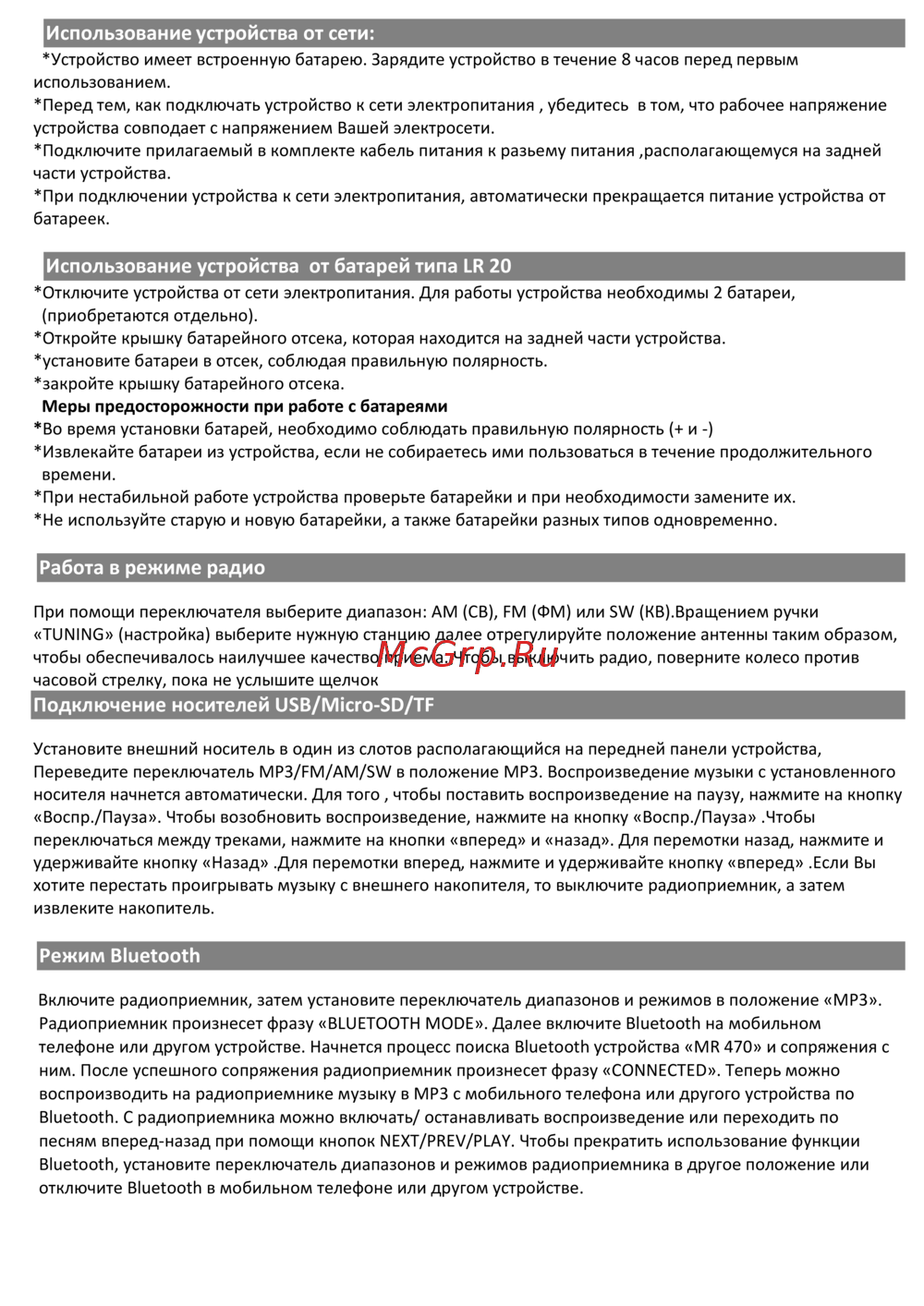 телефоне или другом устройстве. Начнется процесс поиска Bluetooth устройства «MR 470» и сопряжения с