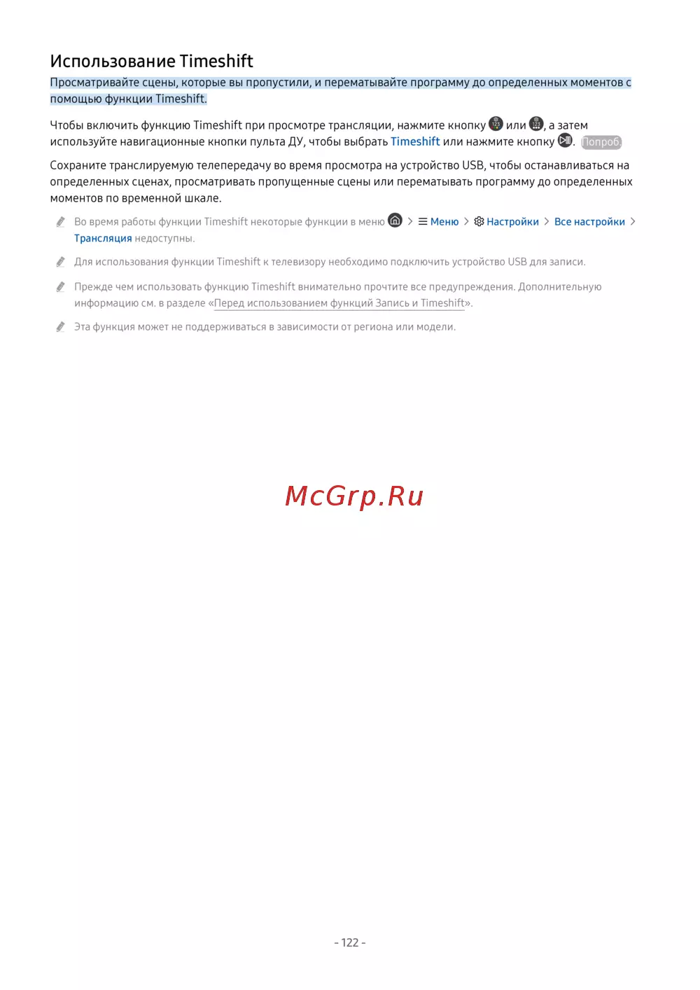 информацию см. в разделе «Перед использованием функций Запись и Timeshift».