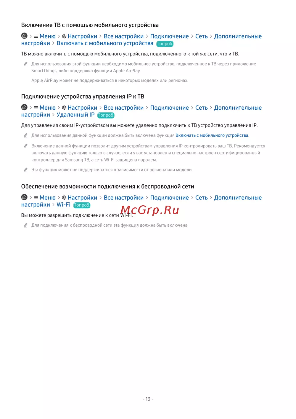 - Обеспечение возможности подключения к беспроводной сети p.13
