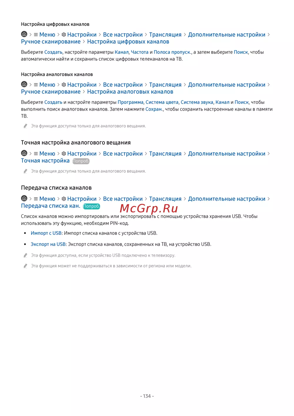 • Экспорт на USB: Экспорт списка каналов, сохраненных на ТВ, на устройство USB.