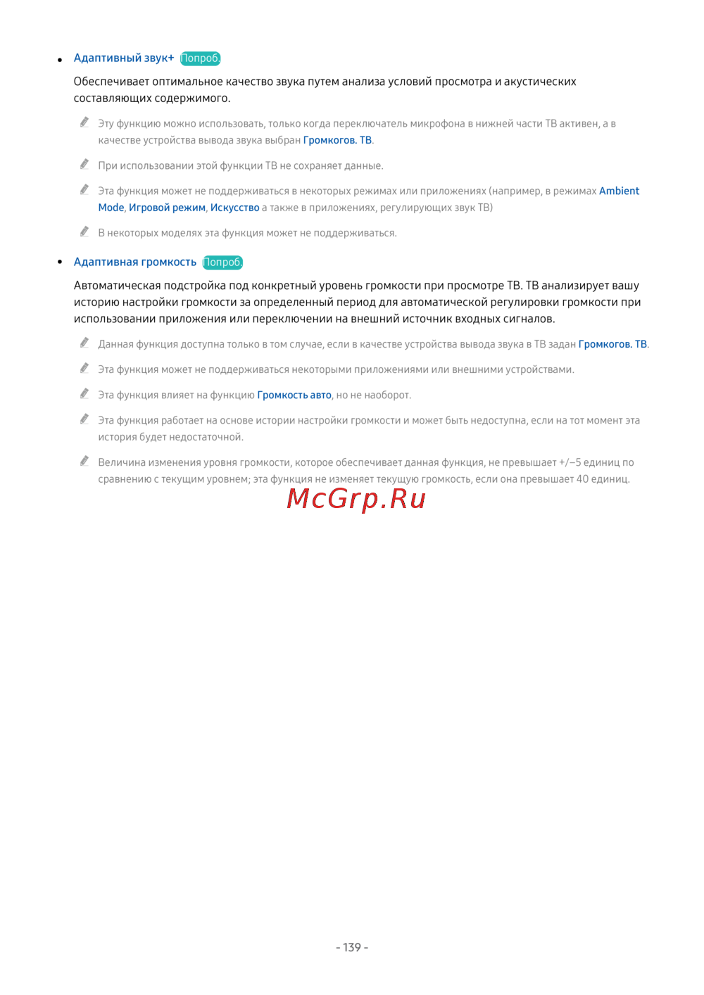 Данная функция доступна только в том случае, если в качестве устройства вывода звука в ТВ задан Громкогов. ТВ.