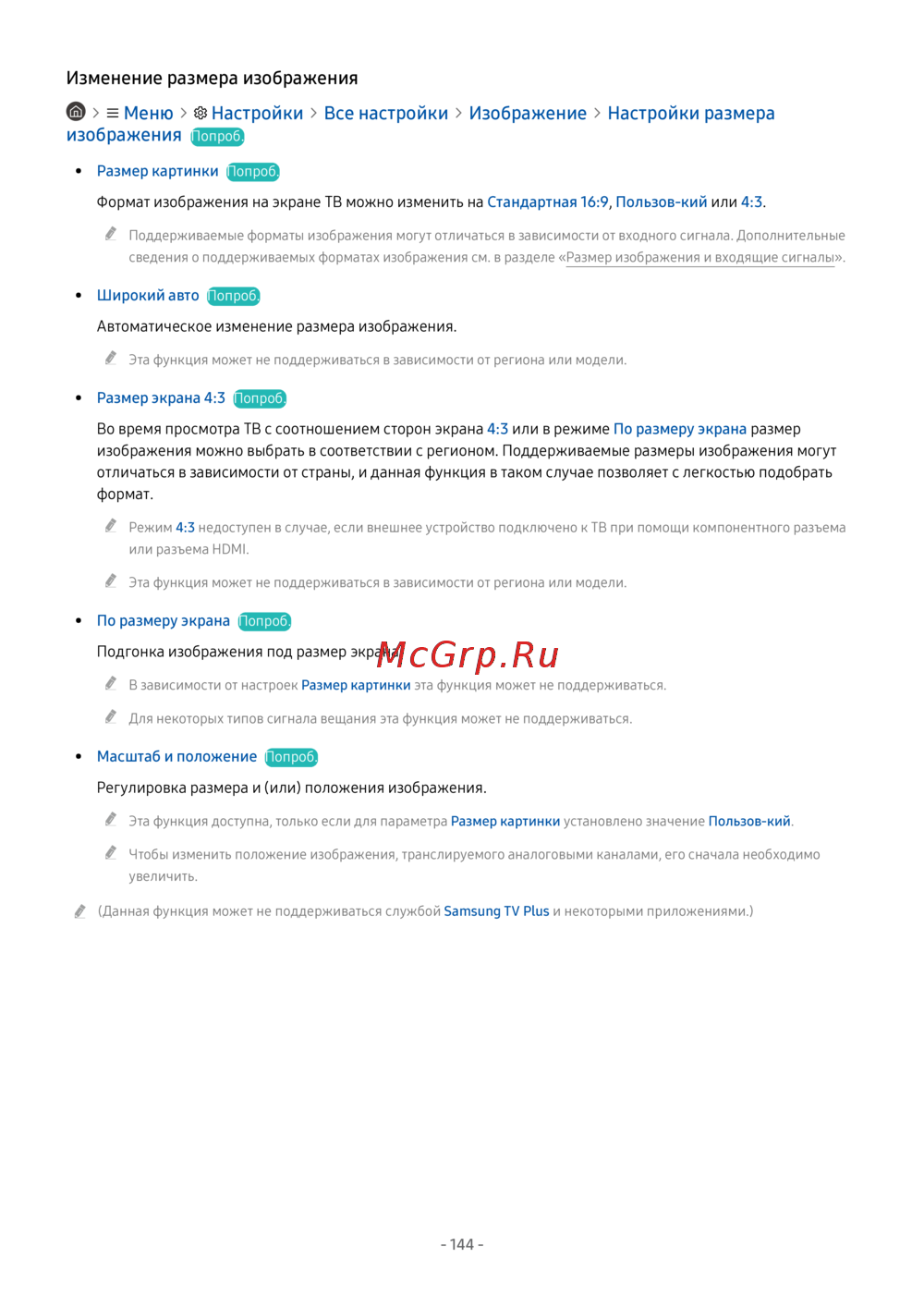 (Данная функция может не поддерживаться службой Samsung TV Plus и некоторыми приложениями.)