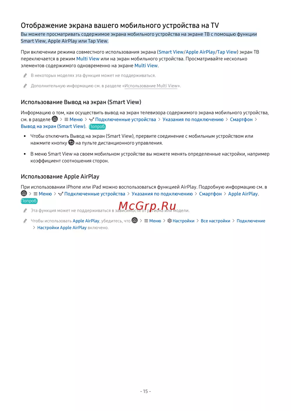 - Отображение экрана вашего мобильного устройства на tv p.15