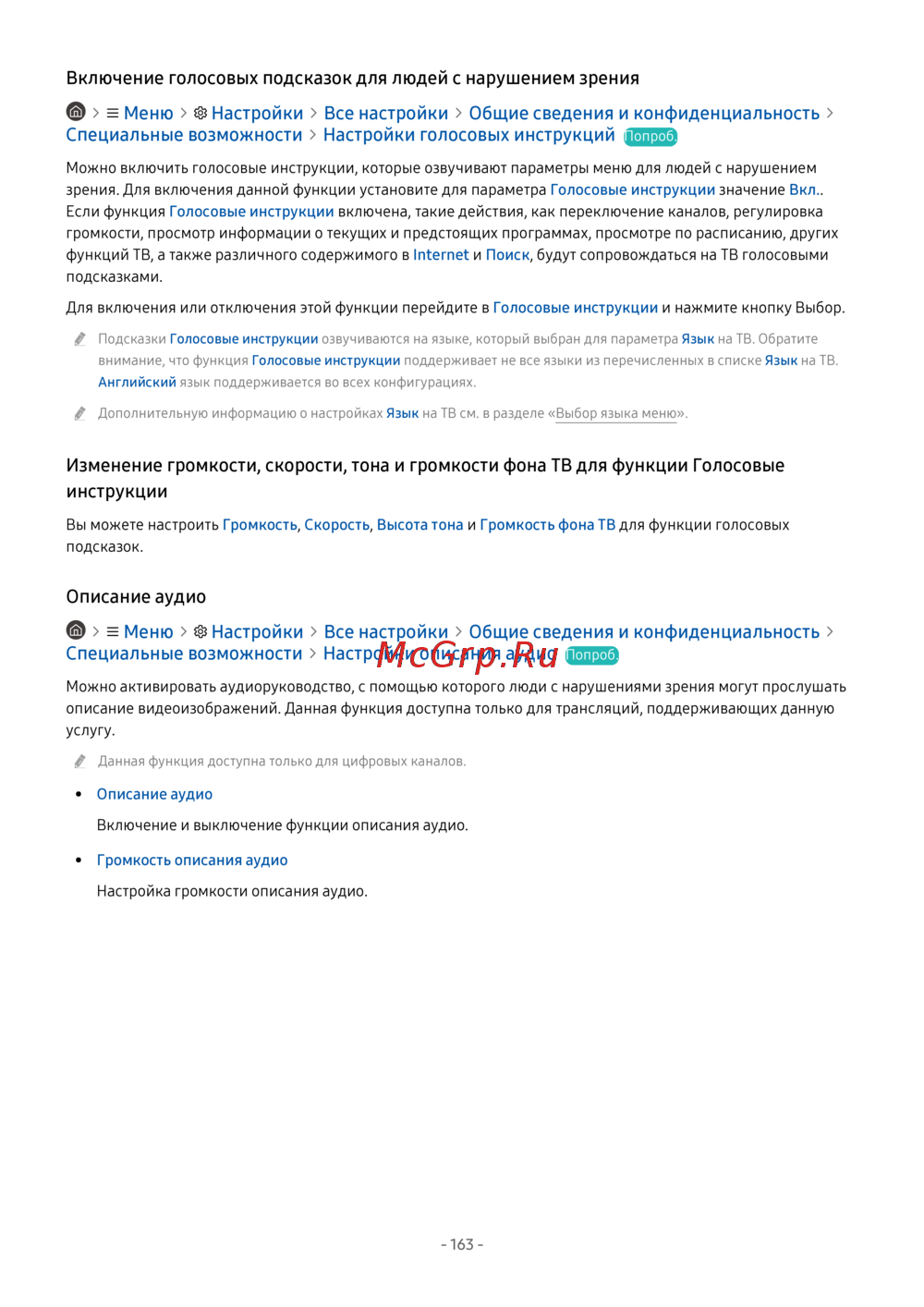 - Работа с тв с включенной функцией голосовые инструкции p.283
