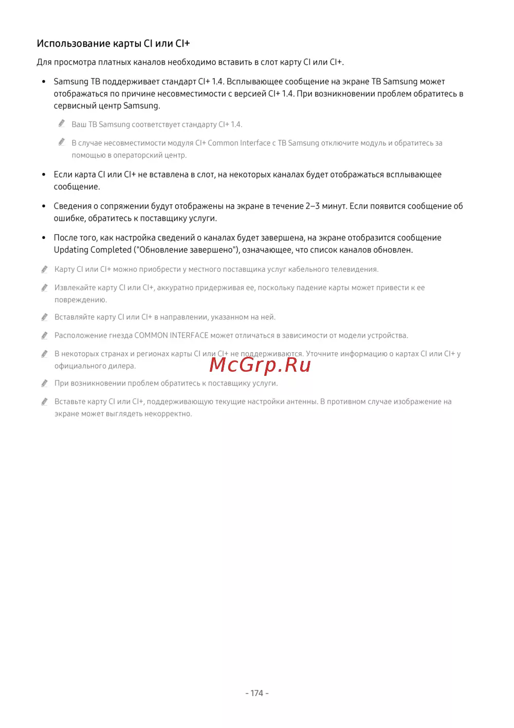 • Samsung ТВ поддерживает стандарт CI+ 1.4. Всплывающее сообщение на экране ТВ Samsung может