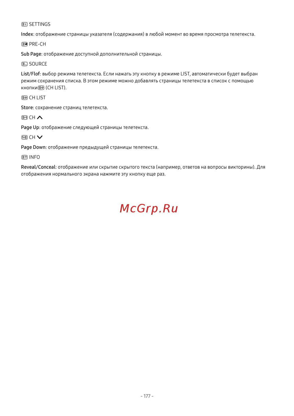 List/Flof: выбор режима телетекста. Если нажать эту кнопку в режиме LIST, автоматически будет выбран