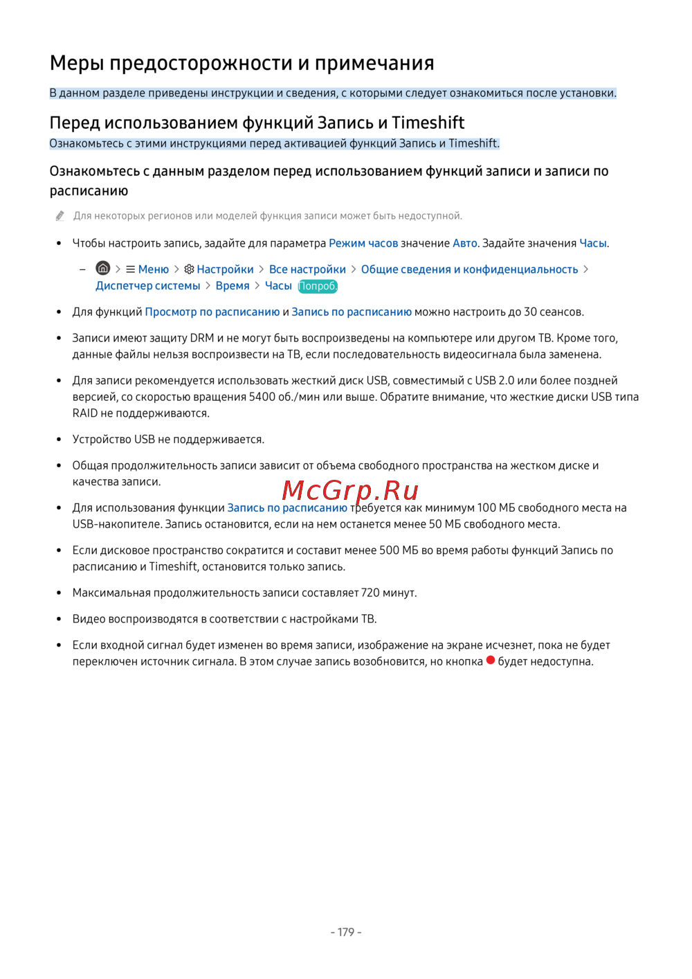 • Для использования функции Запись по расписанию требуется как минимум 100 МБ свободного места на