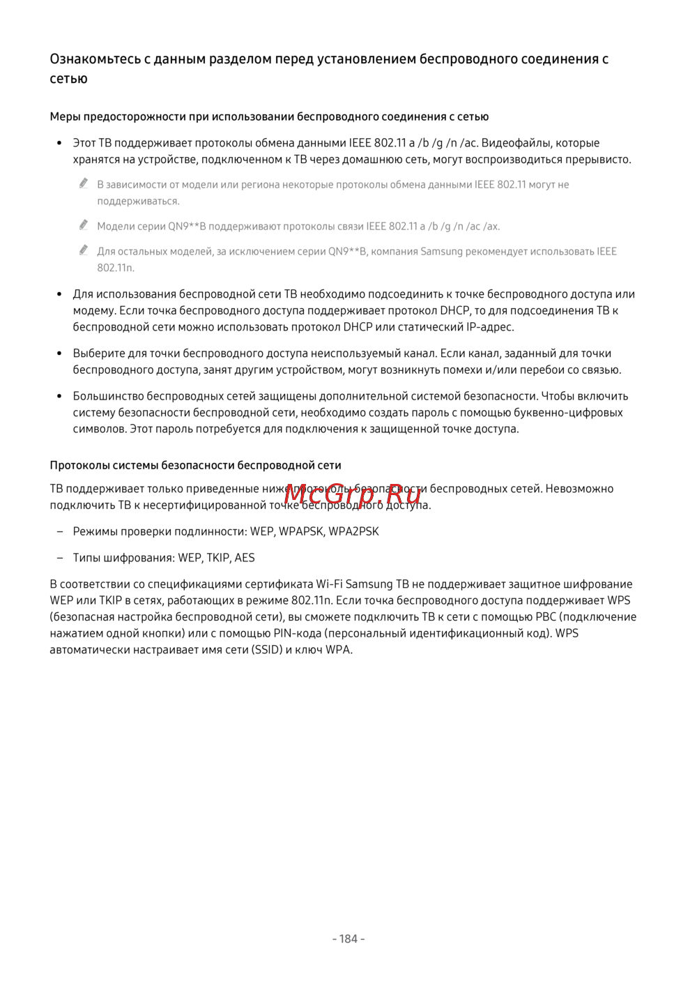 ТВ поддерживает только приведенные ниже протоколы безопасности беспроводных сетей. Невозможно
