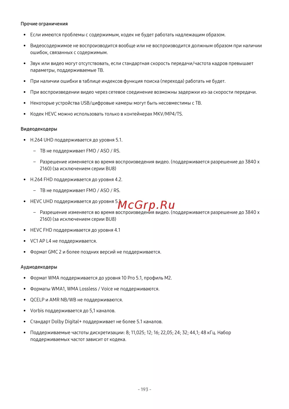 • H.264 UHD поддерживается до уровня 5.1.