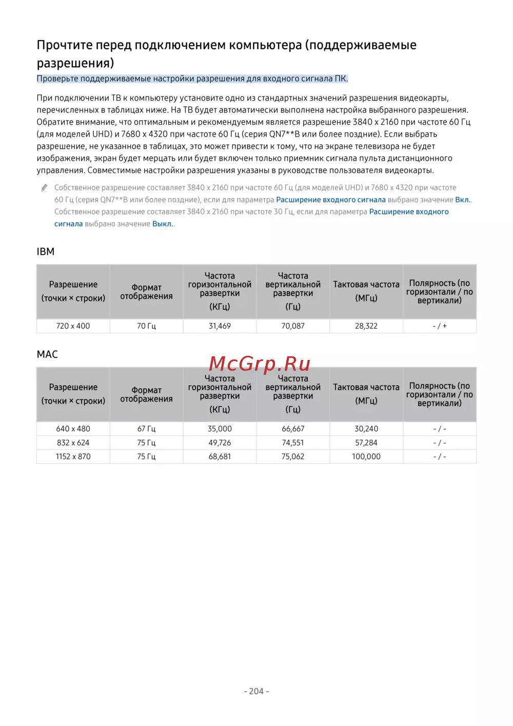 Samsung QE55QN700BU [204/299] Прочтите перед подключением компьютера поддерживаемые разрешения
