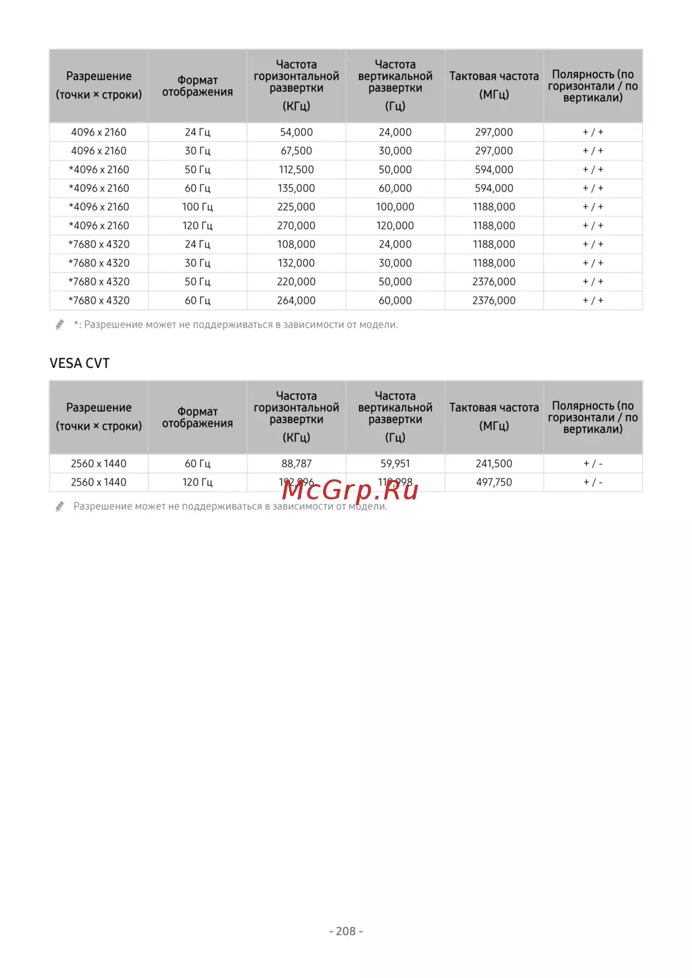 *: Разрешение может не поддерживаться в зависимости от модели.