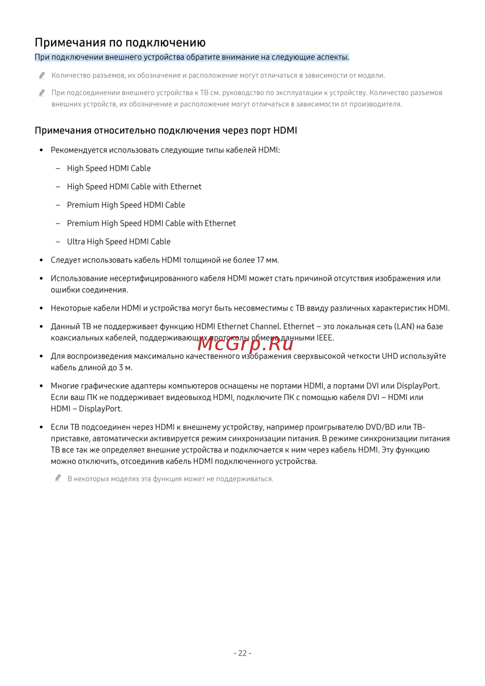 Samsung QE55QN700BU [22/299] Примечания относительно подключения через порт hdmi