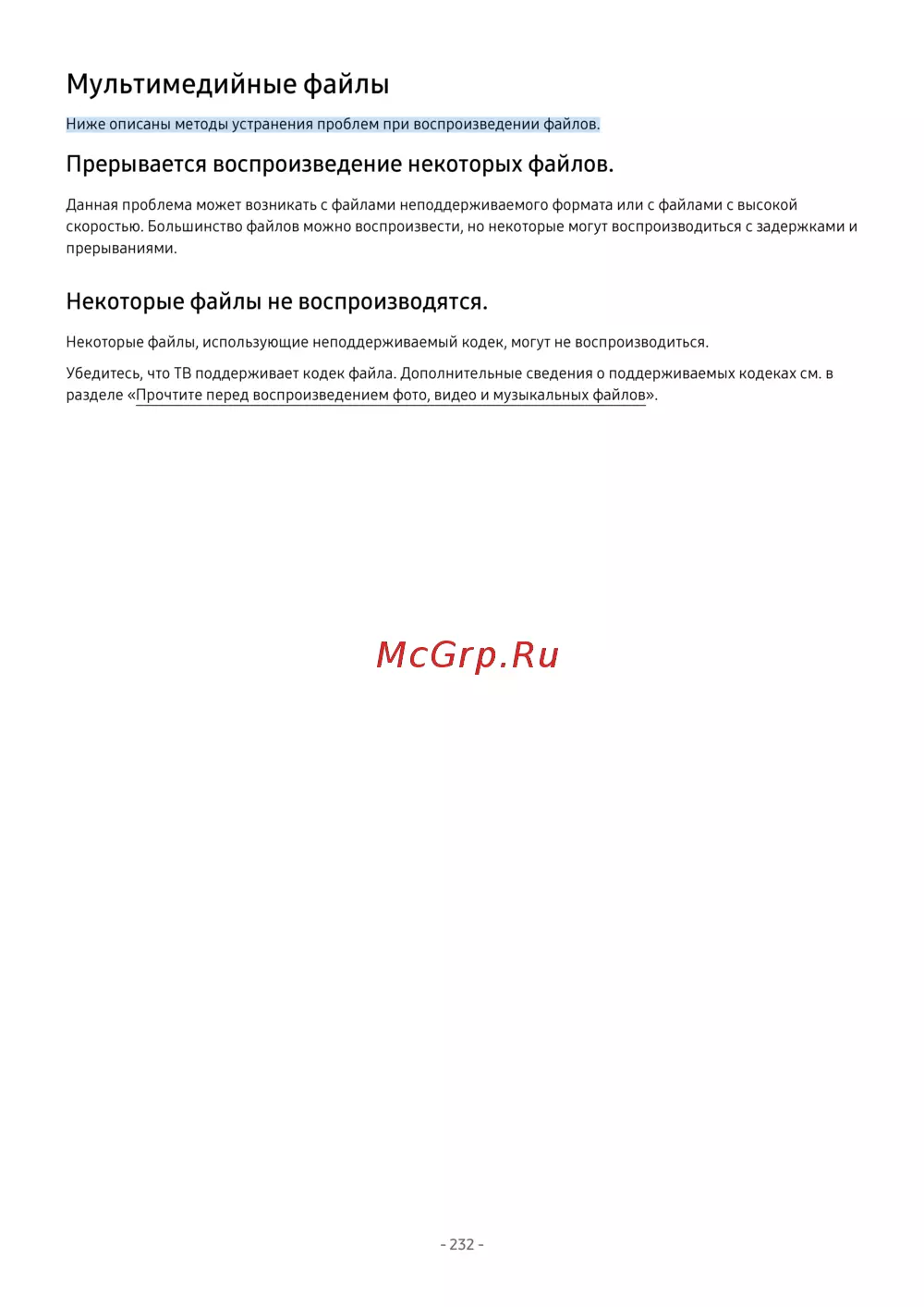 Ниже описаны методы устранения проблем при воспроизведении файлов.