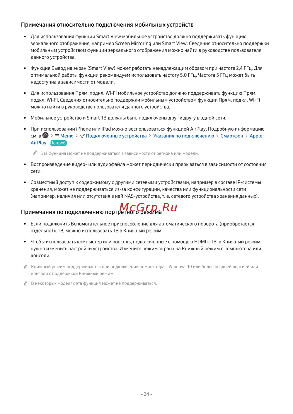• Для использования функции Smart View мобильное устройство должно поддерживать функцию