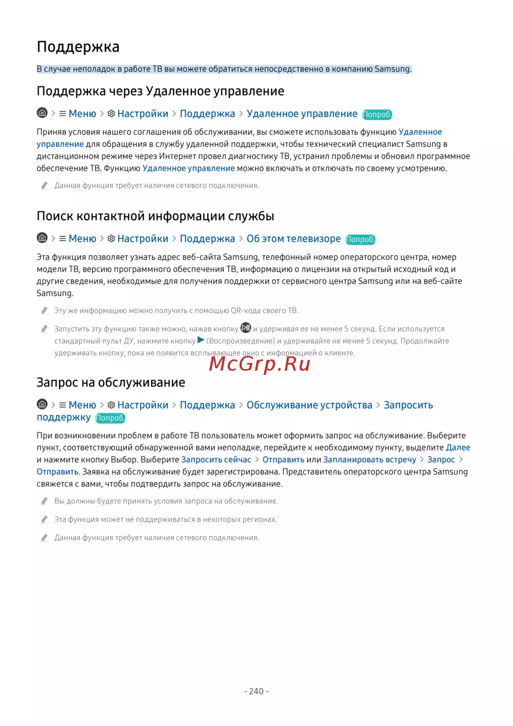 управление для обращения в службу удаленной поддержки, чтобы технический специалист Samsung в