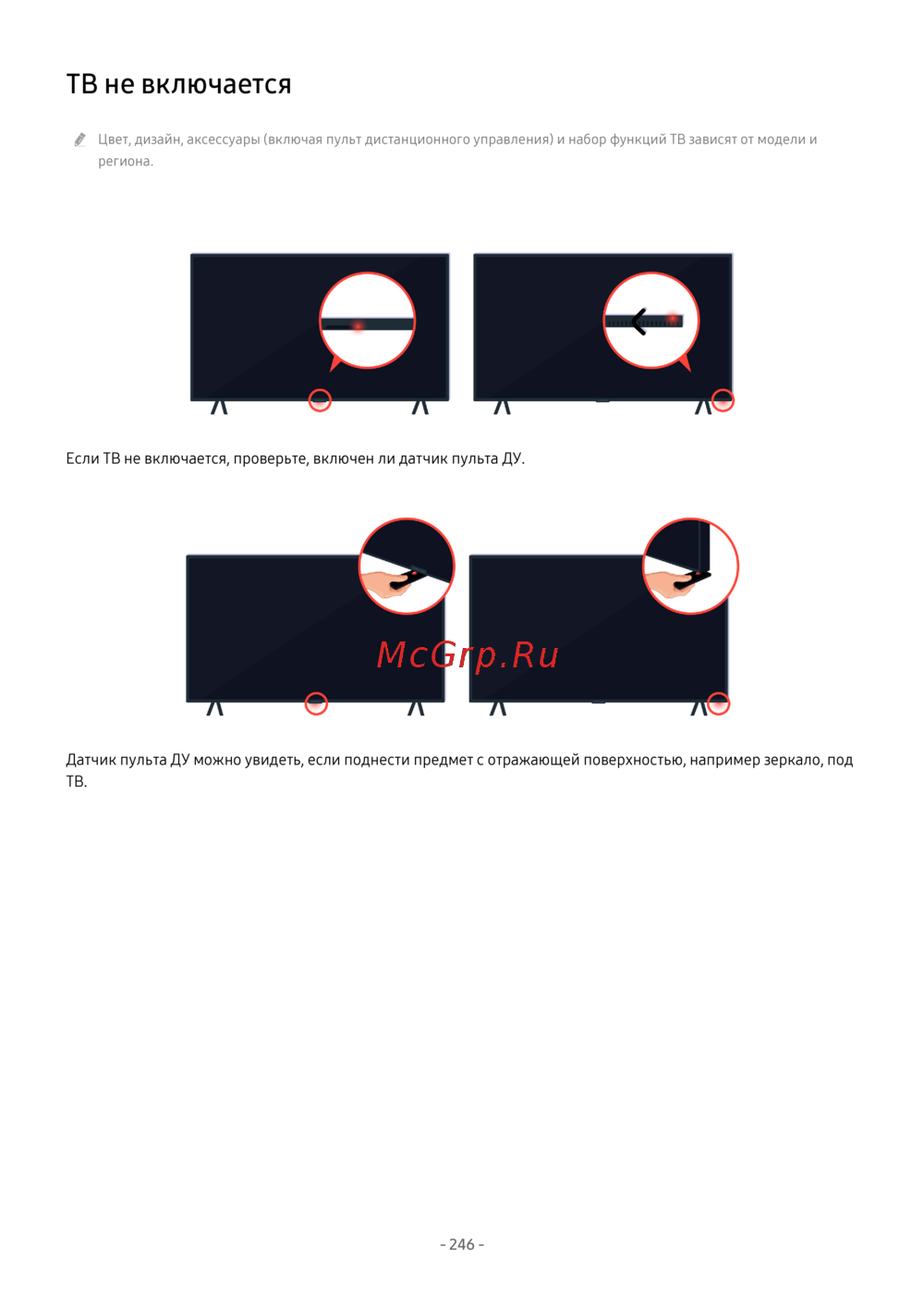 Если ТВ не включается, проверьте, включен ли датчик пульта ДУ.