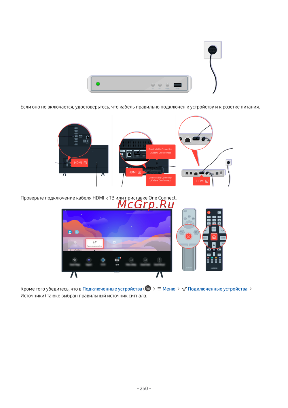 - Проверьте подключение кабеля hdmi к тв или приставке one connect p.249