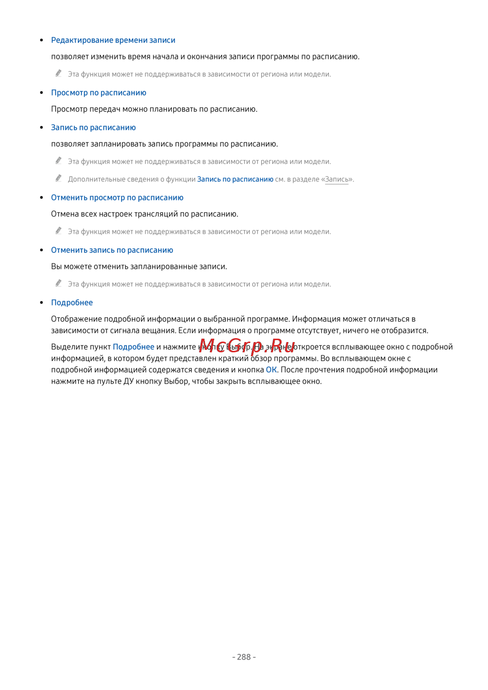 - Использование функций моментальной записи и записи по расписанию на экране телегида p.292