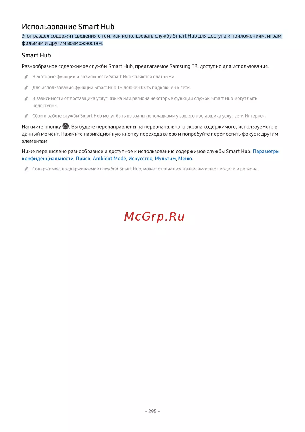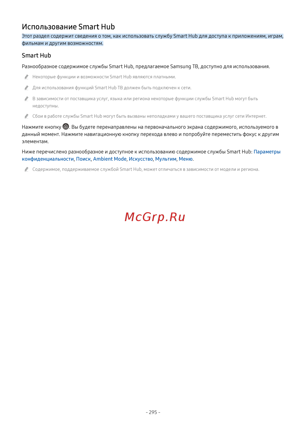 Содержимое, поддерживаемое службой Smart Hub, может отличаться в зависимости от модели и региона.