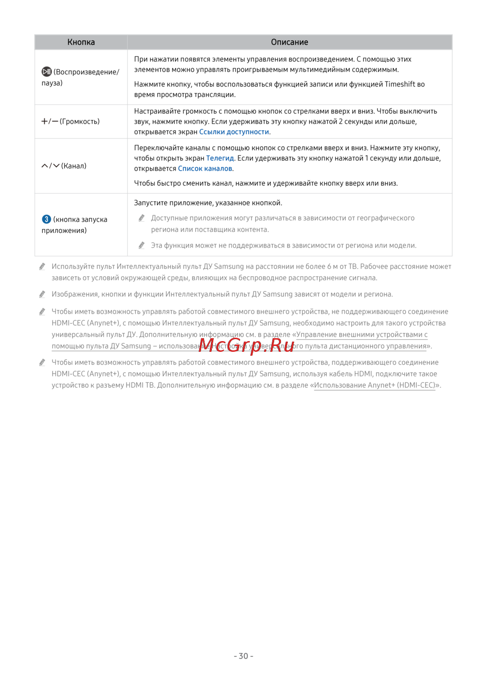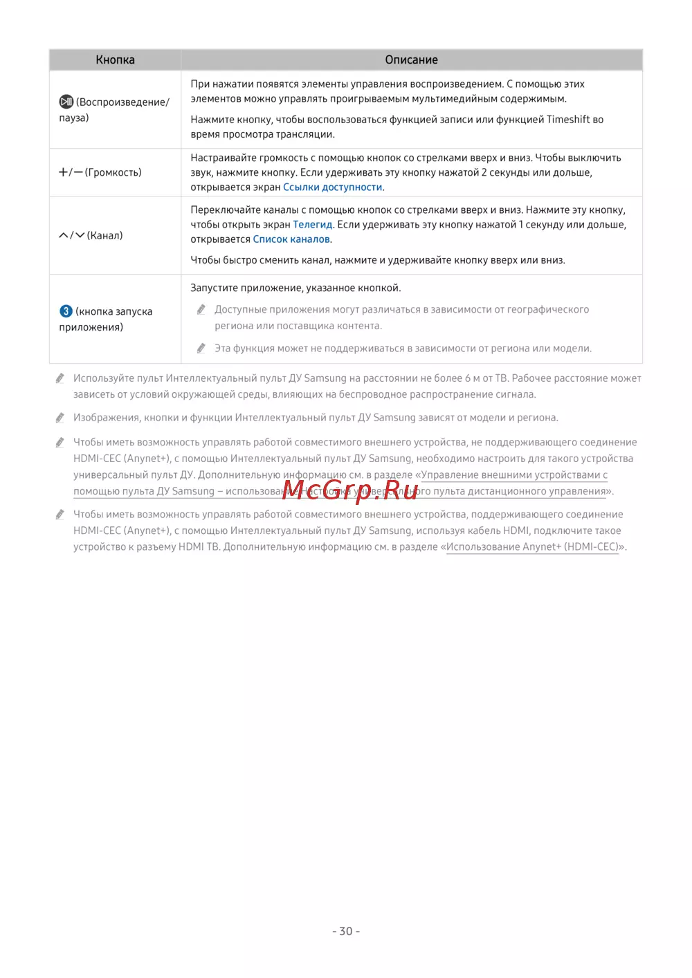 Изображения, кнопки и функции Интеллектуальный пульт ДУ Samsung зависят от модели и региона.