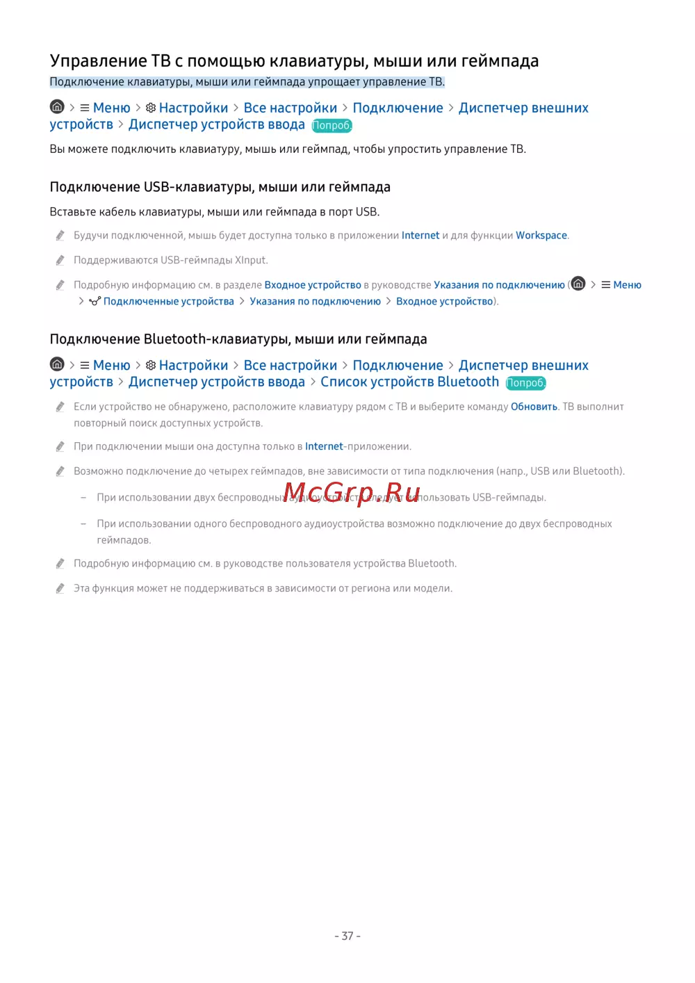Samsung QE55QN700BU [37/299] Подключение usb клавиатуры мыши или геймпада