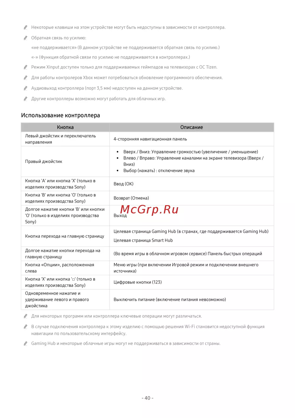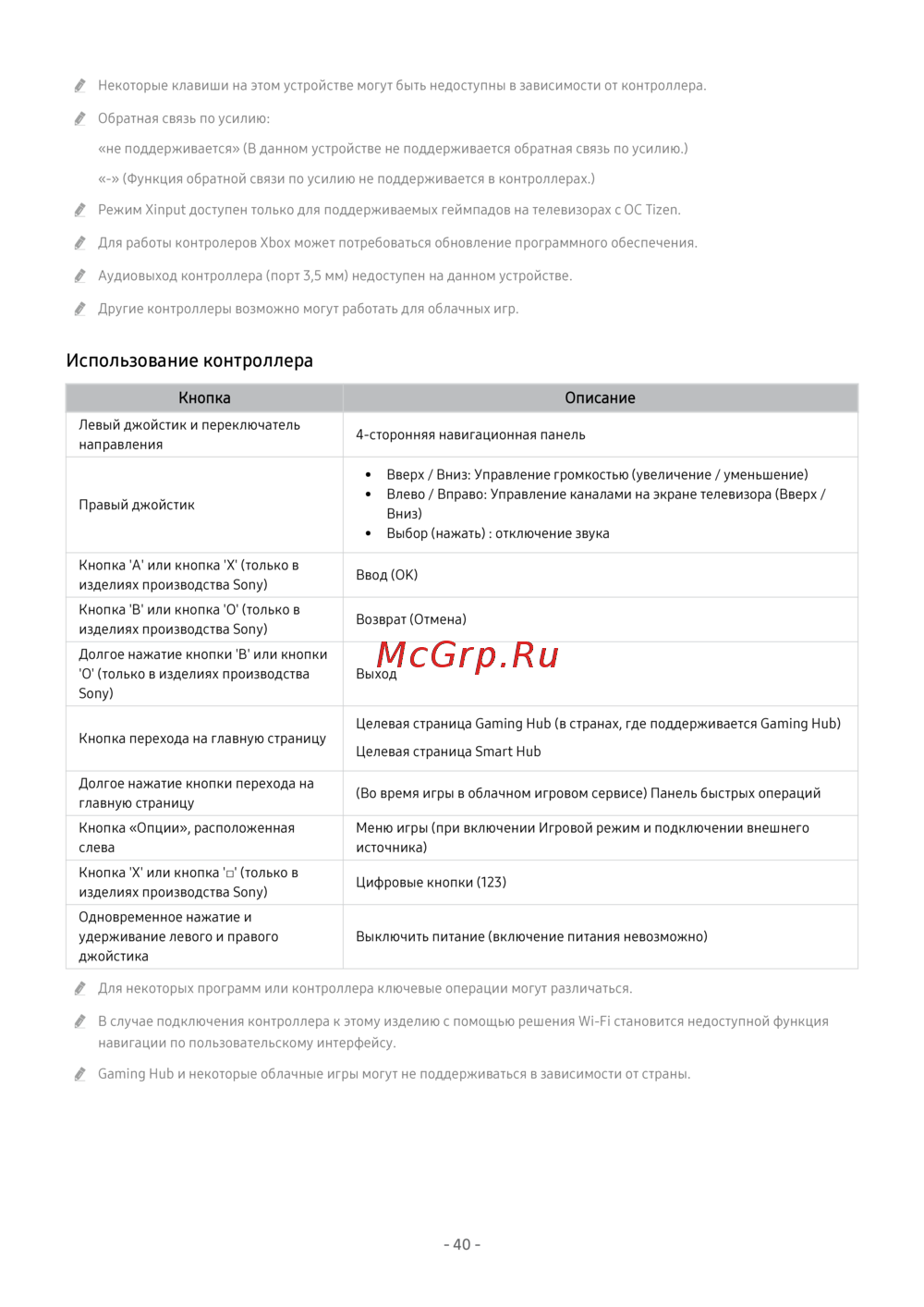 Режим Xinput доступен только для поддерживаемых геймпадов на телевизорах c ОС Tizen.