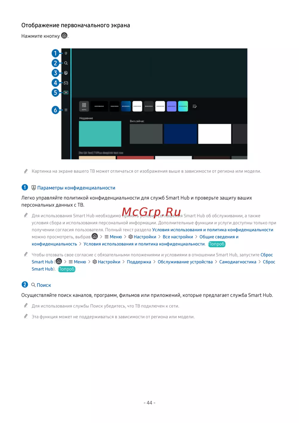 Для использования Smart Hub необходимо принять условия соглашения Smart Hub об обслуживании, а также